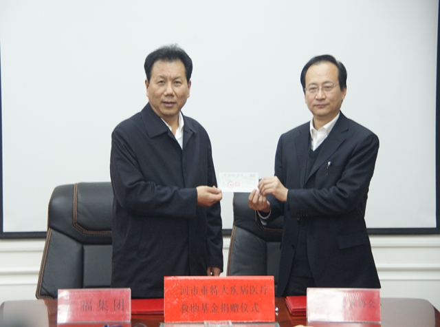 2013年1月18日,三河汇福粮油集团有限公司举行向三河市重特大疾病医疗救助基金捐赠仪式。汇福粮油集团一次性捐赠1500万元人民币。