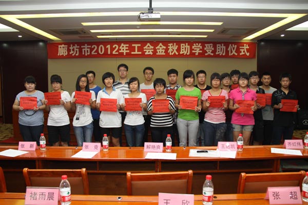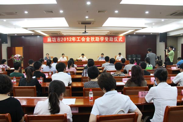 向廊坊市2012年工会“金秋助学”捐款20万元
